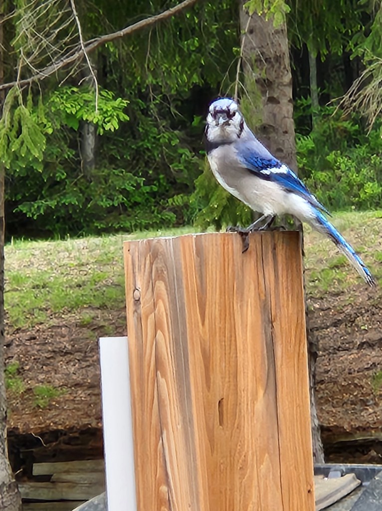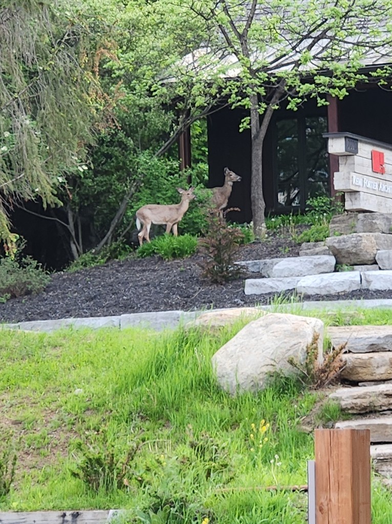When we come up, we are welcomed by deer and birds. It is very peaceful. This week, we were visited by a blue jay along with a doe and her fawn.